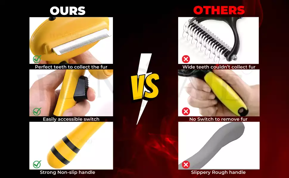 • Pet’s Delight: Give your furry friend the gift of a happy grooming experience with our Deshedding Tool. The charming honey bee dog comb & cat comb design bring relaxation and joy to your pet’s grooming routine.